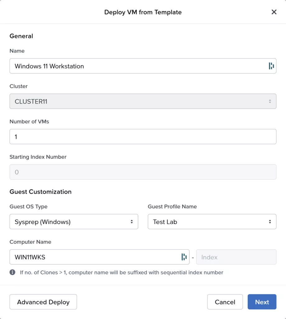 Fill in all required fields and select the create “Guest Profile”. As you can see it will ask for the computer name (Windows name). As I specified this during creation of the Profile. When ready click Next –> Deploy.