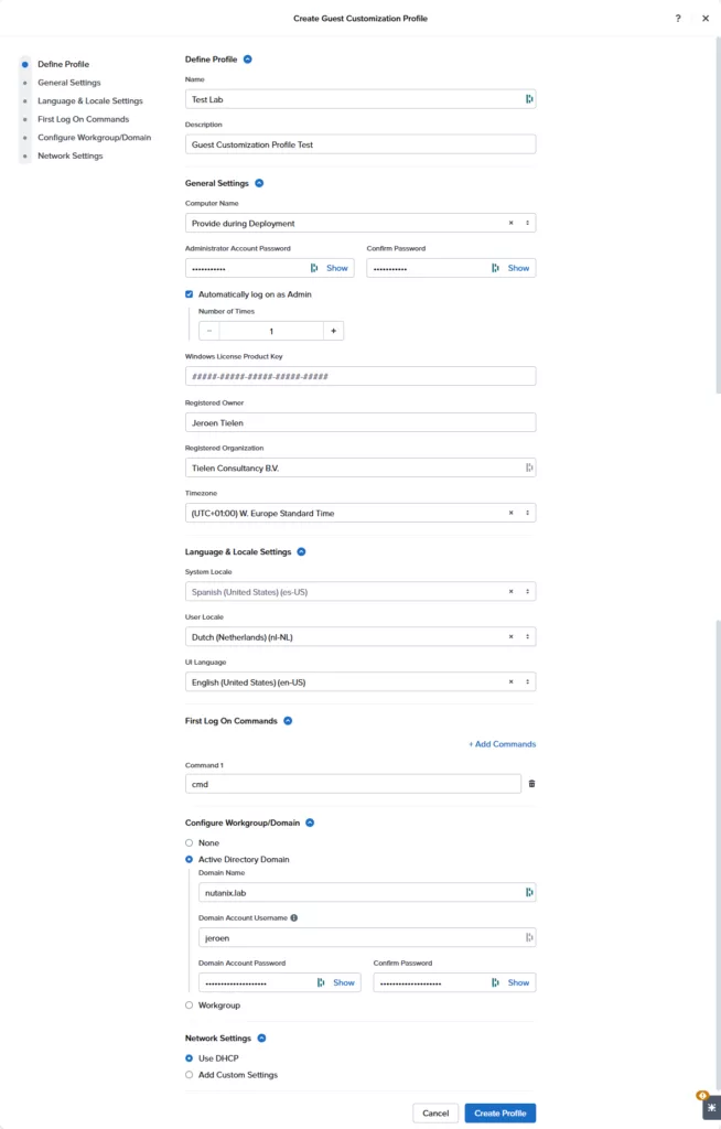 In Prism Central 7.5 Nutanix has added “Guest Customization Profiles”. With this nice feature we can create unattended installs for Windows (current only Windows).
