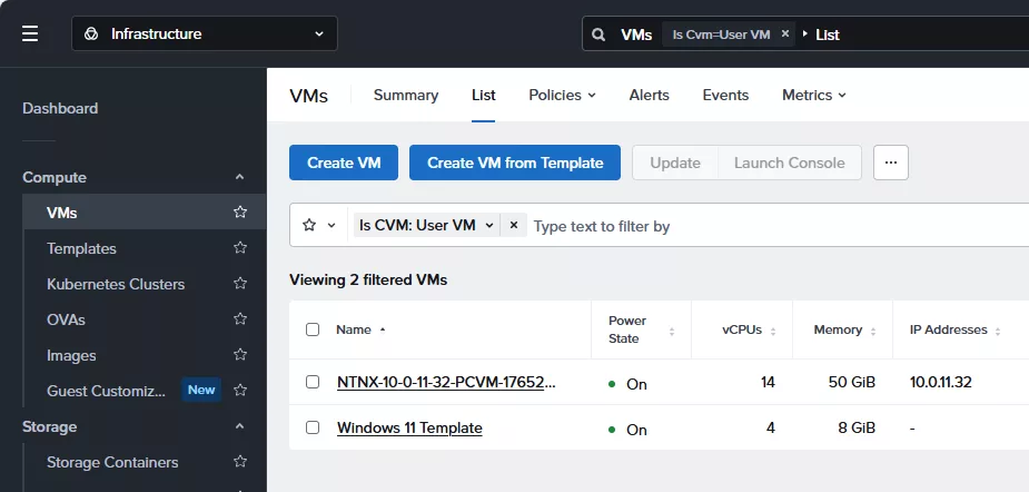For now I will use option 1. In the VMs dashboard click: “Create VM from Template”