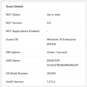 To check which version of NGT is installed in the Virtual Machine open the summary page of the VM in Prism Central:
