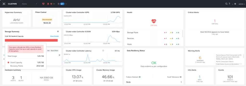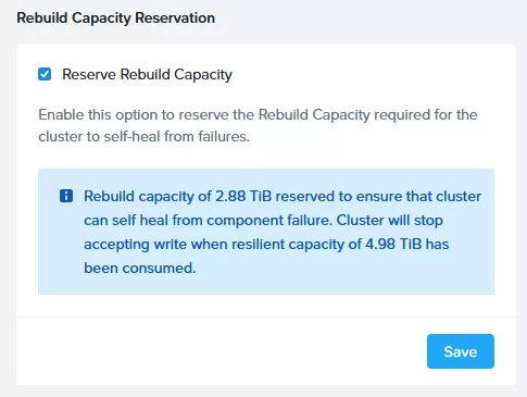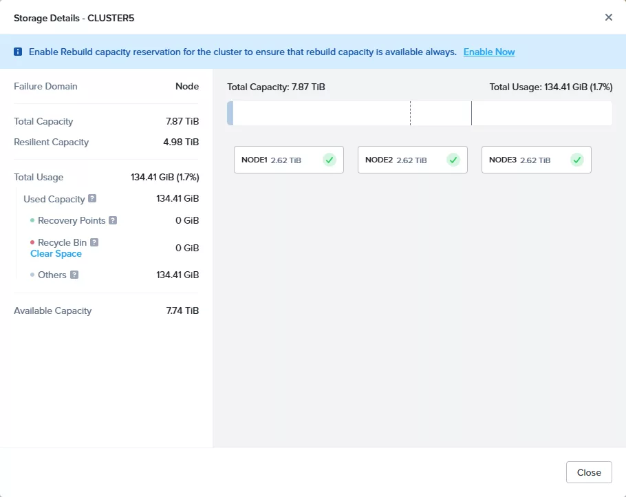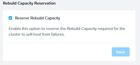 You can find this option in Prism Element –> Settings –> Rebuild Capacity Reservation. The default setting is that it is turned off. When looking into the Storage Summary widget (in Prism Element) you will default see this: