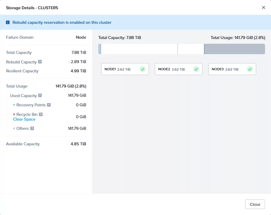 In my case (on this test cluster) I have 7.87TiB of total capacity. When clicking on “View Details” you will see this: